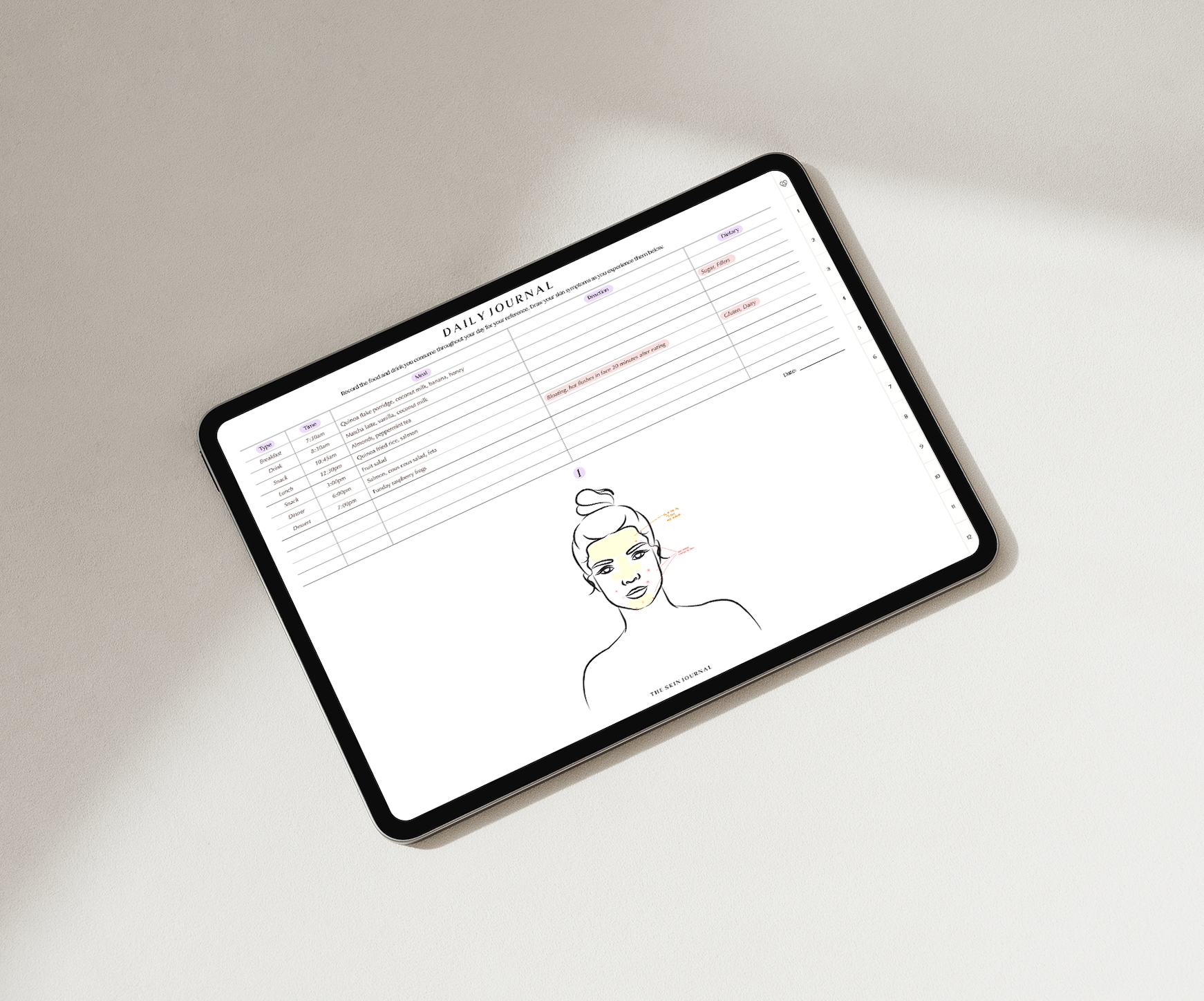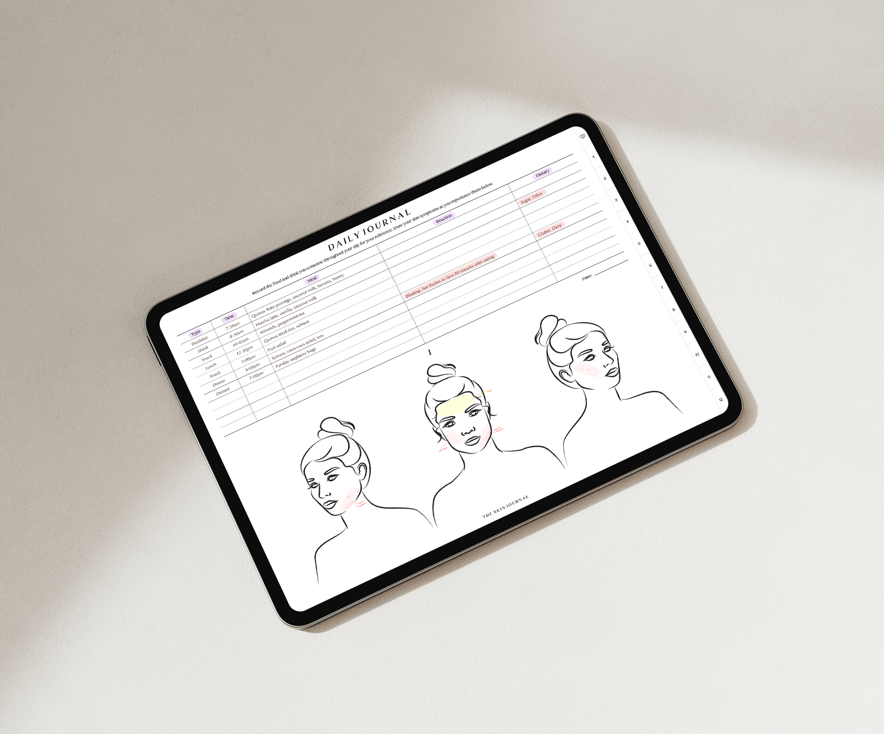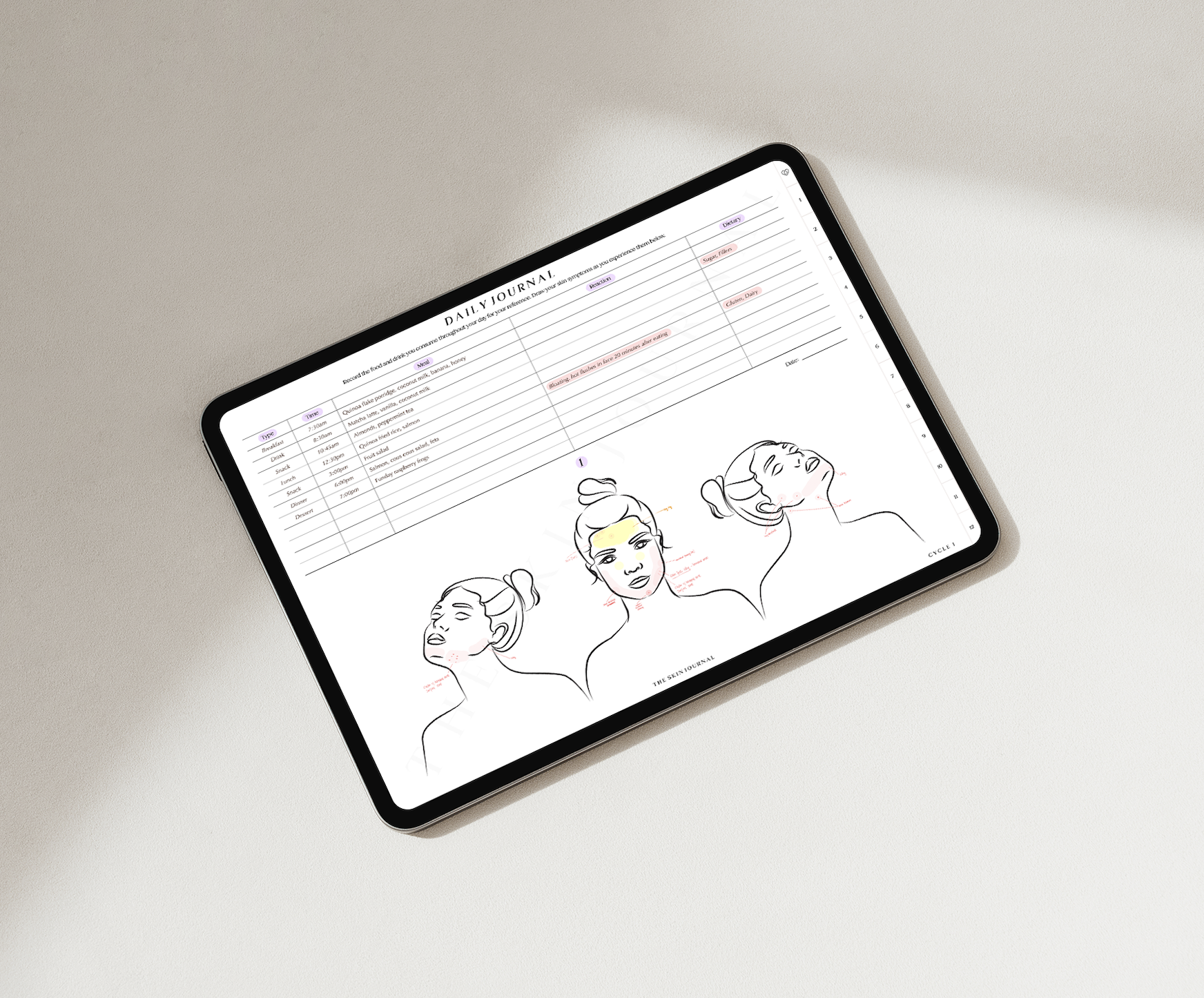 Designed with a single, thoughtfully created illustration, this journal is ideal for women who experience most of their breakouts across these areas, offering a purposeful and gentle way to track their skin and uncover its patterns.